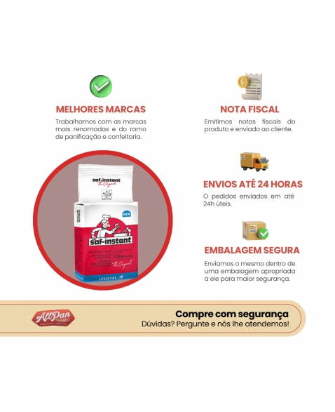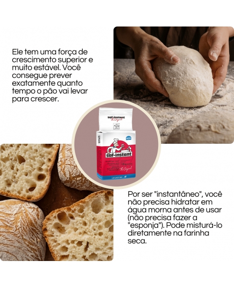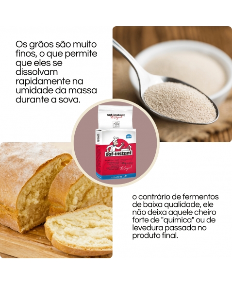 O Saf-Instant é um fermento biológico seco instantâneo de alta qualidade, ideal para panificação profissional e caseira. Com excelente desempenho, proporciona fermentação rápida e uniforme, garantindo pães mais macios, volumosos e saborosos. Dispensa a necessidade de reidratação, podendo ser misturado diretamente à farinha. Perfeito para receitas como pães tradicionais, massas doces e fermentações longas.