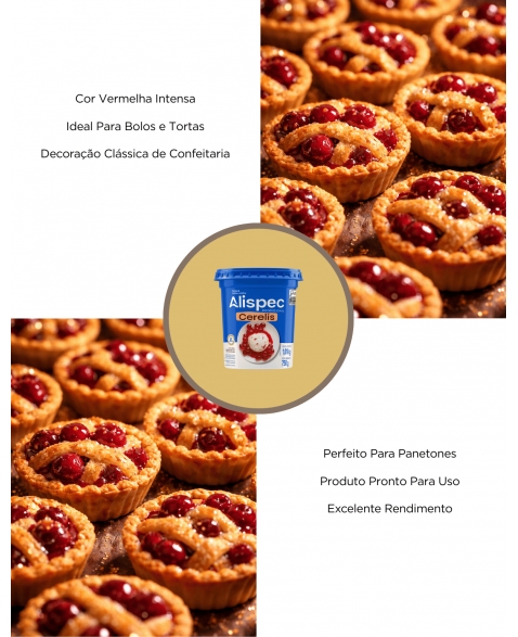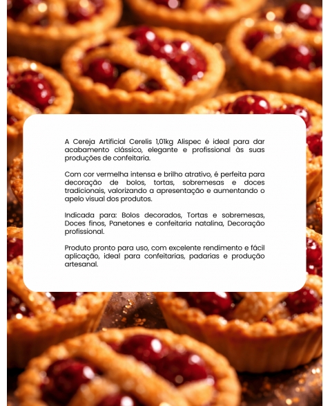 CERELIS ALISPEC É ENFEITE PARA CONFEITARIA COM SABOR CEREJA. COM UMA RECEITA EXCLUSIVA É PIONEIRO NO MERCADO DESSE SEGMENTO.