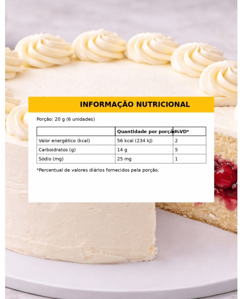 Ingredientes: Açúcar, água, xarope de glucose de milho, amido modificado, espessante alginato de sódio, conservador sorbato de potássio, acidulante ácido cítrico, corante vermelho bordeaux e aroma idêntico ao natural. ALÉRGICOS: Pode conter derivados de leite. NÂO CONTÉM GLÚTEn.
