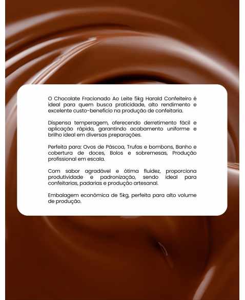 A Cobertura Harald Confeiteiro Barra 5kg é a escolha perfeita para confeiteiros e chocolatiers que buscam praticidade e qualidade. Com um delicioso sabor de chocolate ao leite, essa cobertura dispensa o processo de têmpera, garantindo um derretimento e aplicação fáceis, ideal para cobrir, rechear e decorar suas criações.