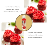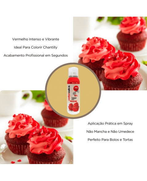 Spray que adiciona instantâneamente detalhes coloridos para bolos, cupcakes, coberturas, chantily, fondants entre outros.