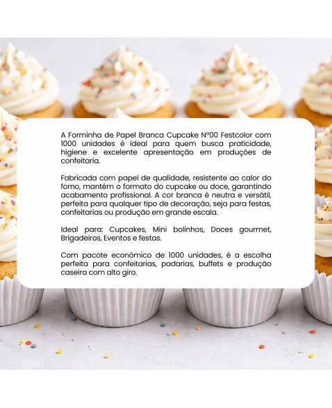 Equipamentos e UtensíliosFormas, Esteiras e AssadeirasDescartávelForminha Papel Cupcake Nº00 Branca 1000un