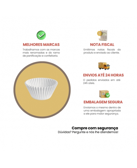 Embalagem com 10 pacotes. Cada pacote contendo 100 forminhas de papel. Forminha em papel certificado e biodegradável