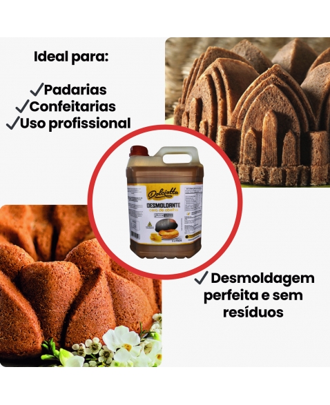 Ideal para padarias, confeitarias, buffets e cozinhas profissionais, o desmoldante Dolciatta oferece alto rendimento, fácil aplicação e resultados consistentes, sem alterar o sabor ou aroma dos alimentos.