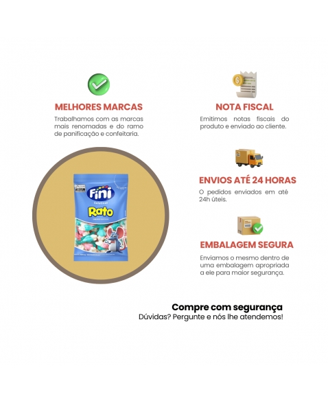 AlimentosDoces e GuloseimasGominhasBALA DE GELATINA RATO 500G FINI