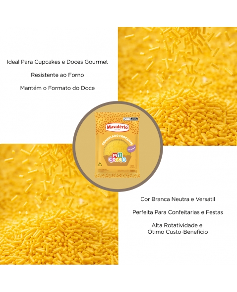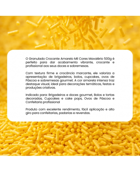 Deixe suas sobremesas ainda mais incríveis com o Granulado Amarelo Mil Cores 500g! Com uma explosão de cores vibrantes, esse granulado é perfeito para dar um toque especial na decoração de brigadeiros, cupcakes, bolos e tortas. Além de deixar suas sobremesas visualmente bonitas, o Granulado Amarelo Mil Cores também acrescenta um sabor delicioso. Transforme suas criações em verdadeiras obras de arte com esse granulado!