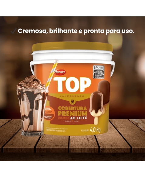 A Cobertura Harald Líquida Top Soft Premium Ao Leite 4kg é a solução prática e profissional para confeiteiros e sorveteiros que buscam sabor, brilho e rendimento em suas criações. Pronta para uso, dispensa derretimento, garantindo agilidade no preparo e um acabamento impecável.