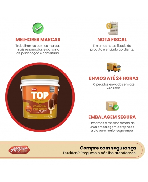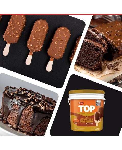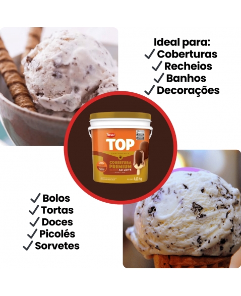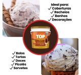Com sabor autêntico de chocolate ao leite e textura cremosa, é ideal para coberturas, recheios, decorações e banhos em picolés, bolos, tortas, sorvetes e sobremesas.