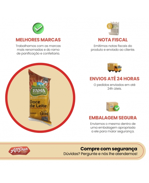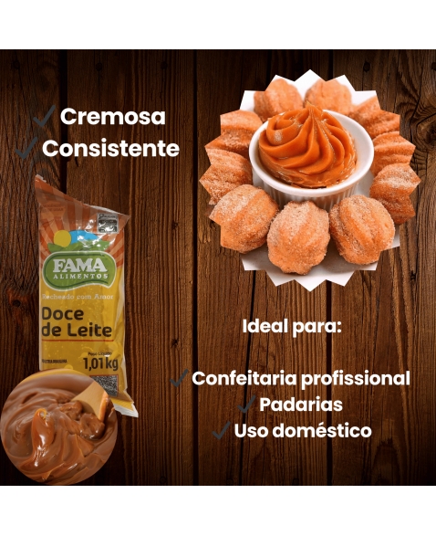 O Doce de Leite Puro Fama conta com uma consistência apropriada para rechear e cobrir bolos, tortas, carolinas e bombas.