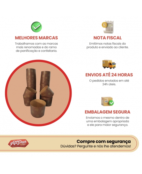 A Forma Panetone Ecopack 100g Marrom com 100 Unidades é a escolha ideal para padarias, confeitarias e produções artesanais. Feita em papel resistente e próprio para assar, dispensa formas metálicas, garantindo praticidade e padronização.