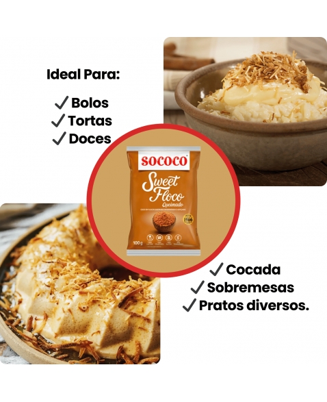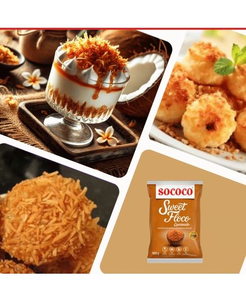 O Coco Queimado Flocos Úmido Sweet 1kg da Sococo é perfeito para adicionar um toque crocante e caramelizado às suas receitas. Ideal para confeitaria, ele é amplamente utilizado em coberturas, recheios de bolos, tortas, doces e outras delícias. A textura úmida e adoçada, combinada com o sabor torrado, proporciona um acabamento irresistível e uma apresentação visual atraente.
