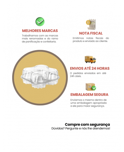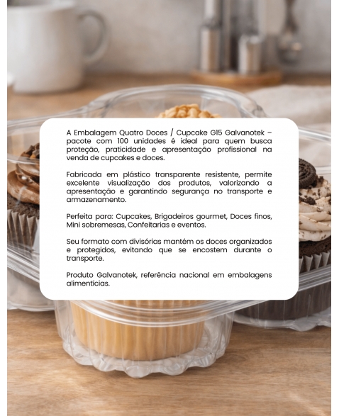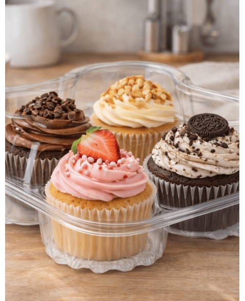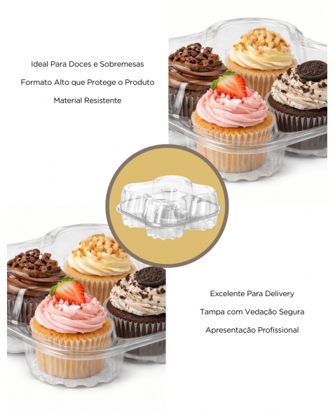 Embalagens ideais para muffins e bolinhos com capacidade para quatro unidades.