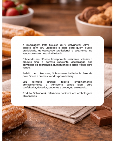 Embalagens ideais para armazenar e servir pequenas porções de doces e sobremesas.