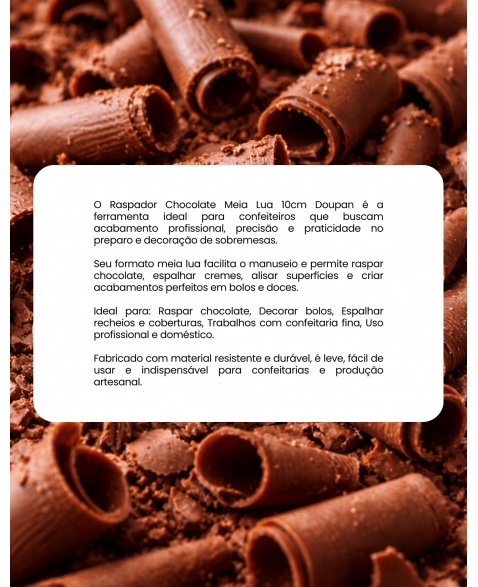 Equipamentos e UtensíliosUtensíliosRaspadorRaspador Chocolate Meia Lua 10cm Doupan