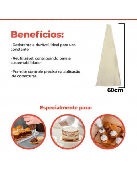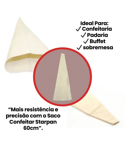 O Saco de Confeitar Lona 60cm da Starpan é uma ferramenta essencial para confeitaria, projetado para suportar recheios pesados e densos, como brigadeiro, glacê real e massas de bolo. Feito de lona de alta resistência, ele oferece durabilidade e segurança durante o uso, sendo ideal para confeitar bolos, tortas e outras delícias com precisão e eficiência.